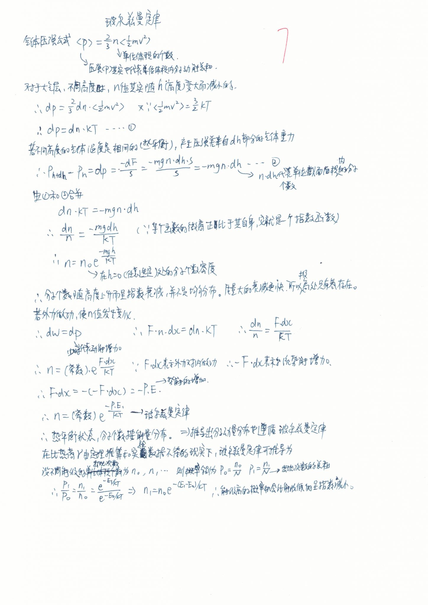 如果将此规律应用于外力(保守力)作用下使气体分布发生变化,我们得到了玻尔兹曼定律:热平衡下,分子个数分布按能量分布。